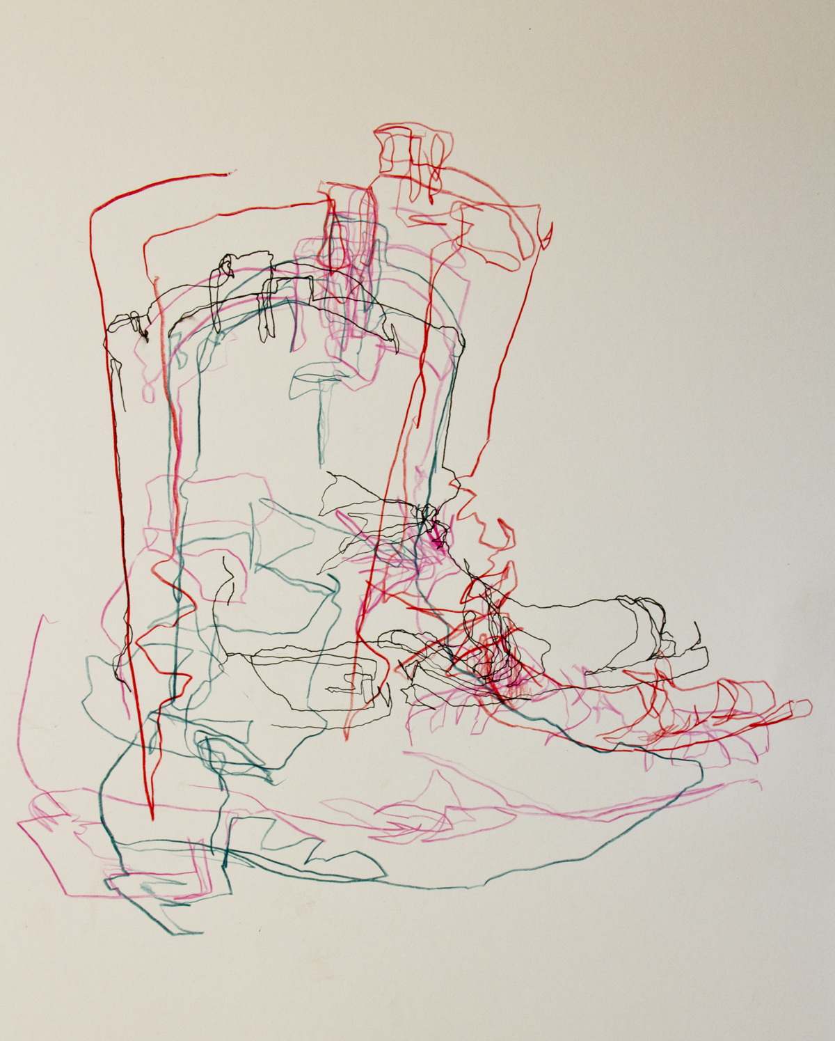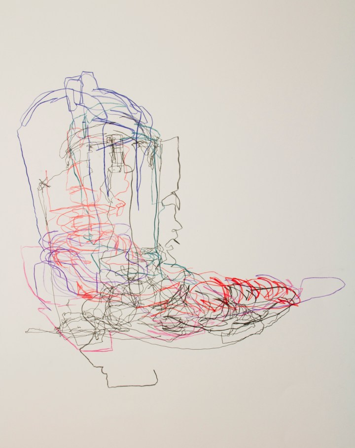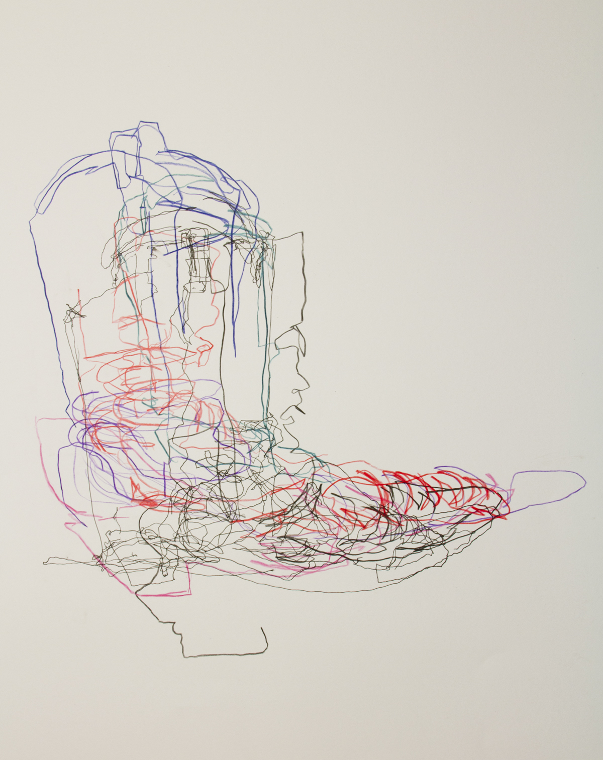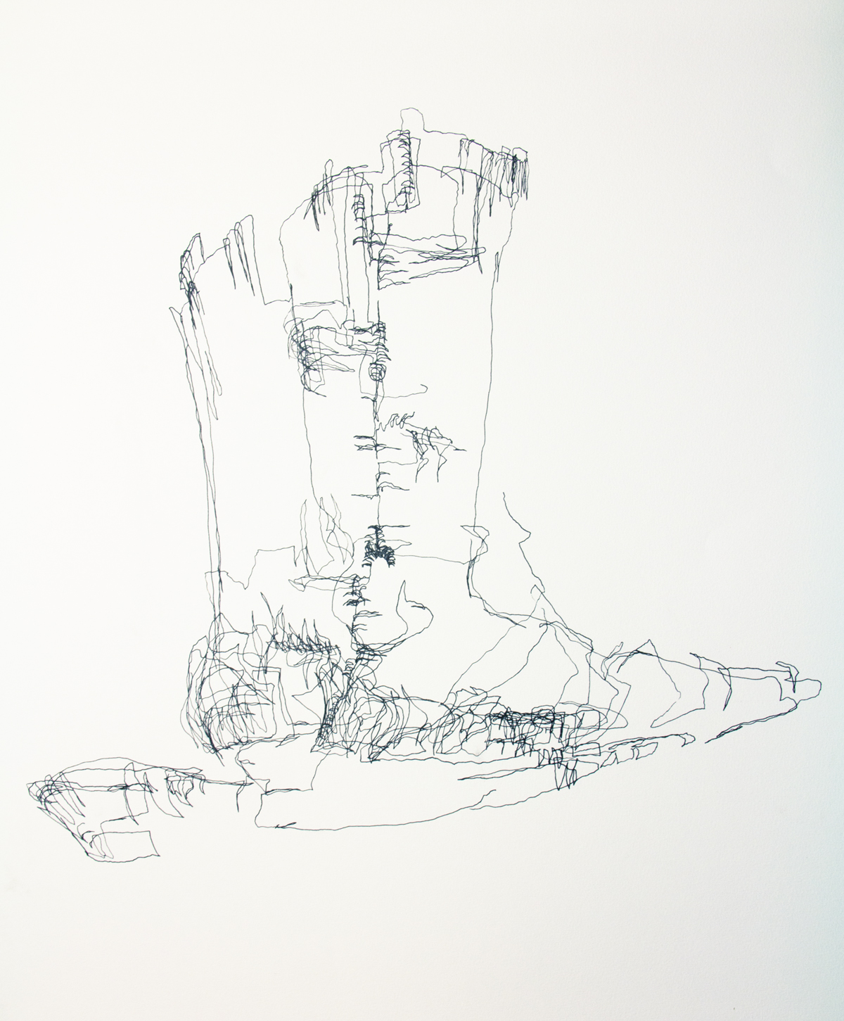 […] for example the drawings of a cowboy boot I did a few months ago. These were done blindfolded entirely by touch, so using my sense of special […]