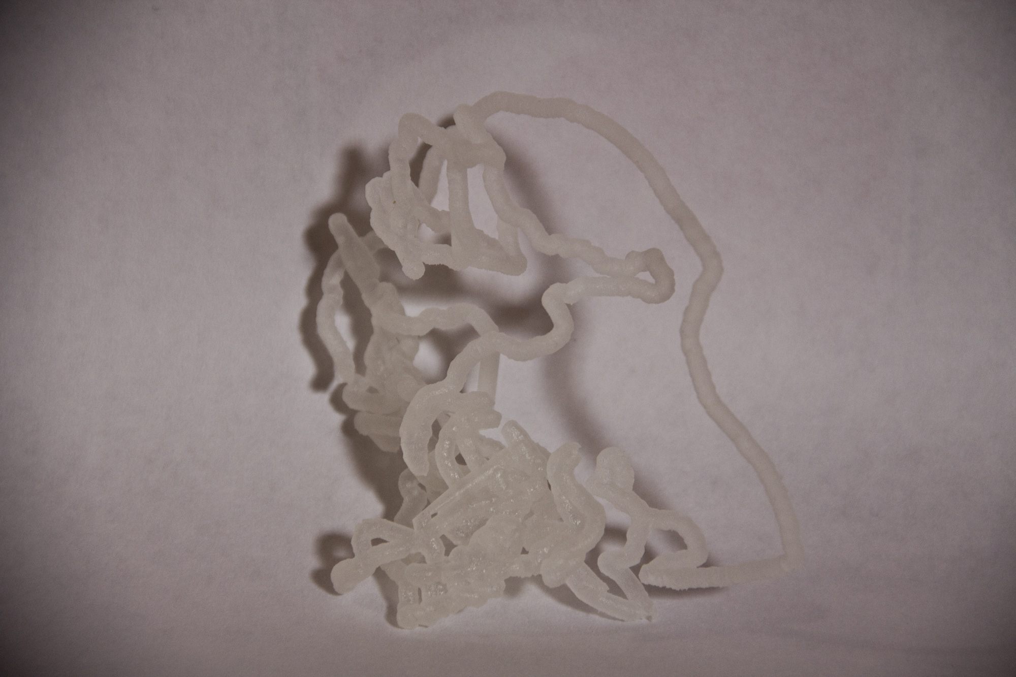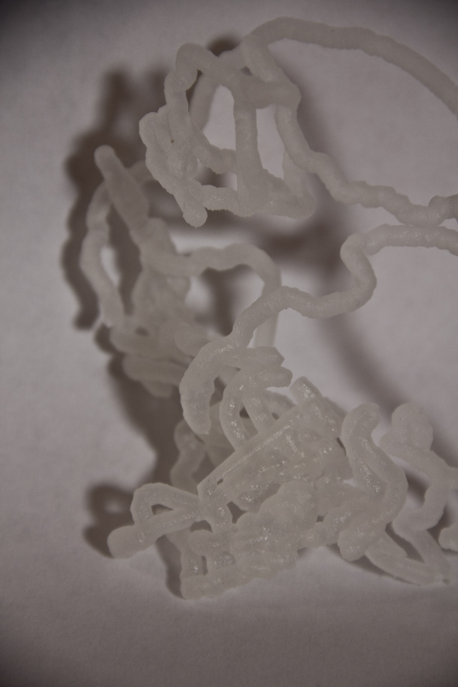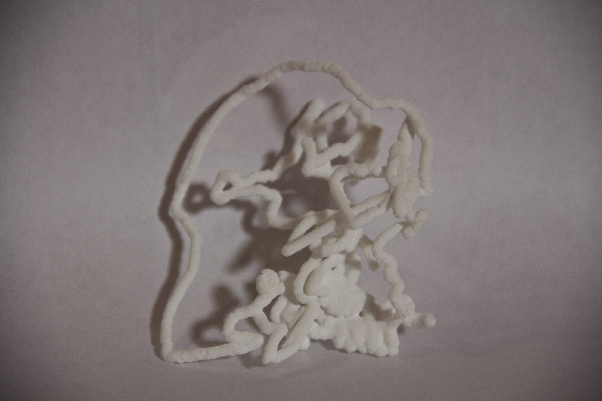 My first 3D print test pieces have arrived, these were drawn by hand in space using a program built by the fantastic Reuben Ingall and then turned into solid 3D objects and printed. This first piece stands about 10cm high and is the sculptural form of one of the drawings in the first video in this post.