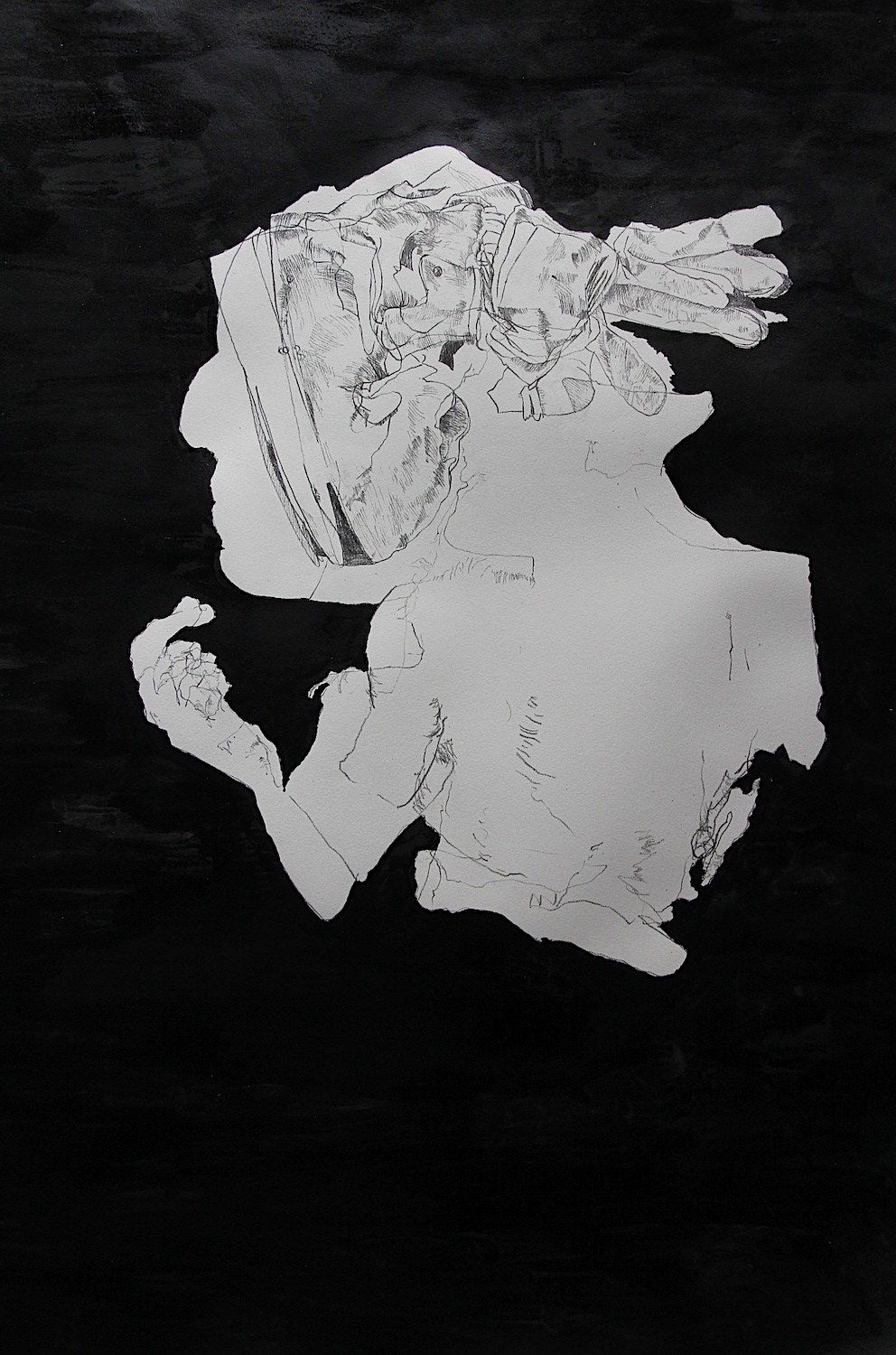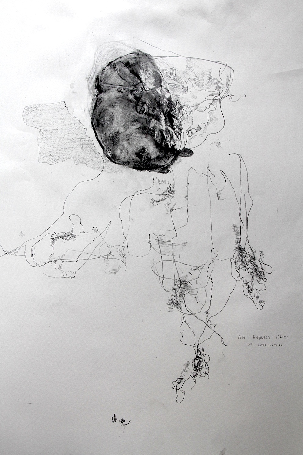 ^the work is embedded in my drawing practice, rather than working from planned drawings I started by drawing blind proprioceptive self portraits on the blank torso and will continue to mark out the work utilising similar experimental drawing methods.