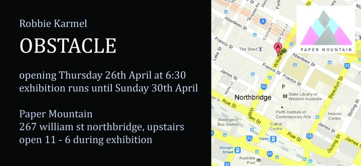 My fourth solo exhibition, Obstacle, opened at Paper Mountain gallery in Perth on Thursday, below are some photos of the installed work.