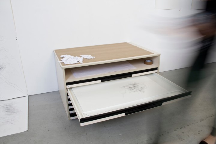 The work was for sale at $100 per piece of A1 paper and all 130+ works I produced during my residency at PICA were either on the walls or in the plan draws for visitors to look through.
