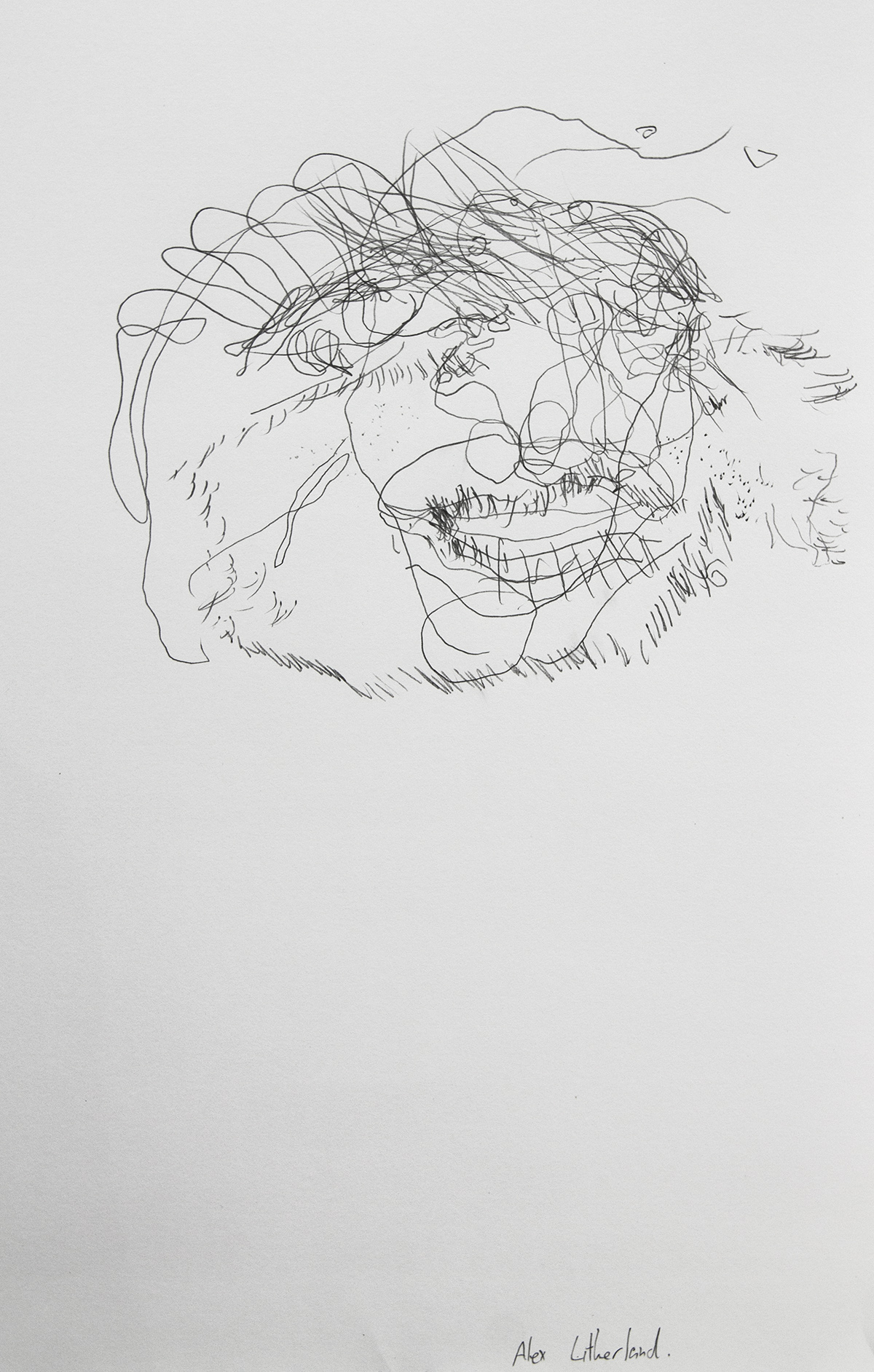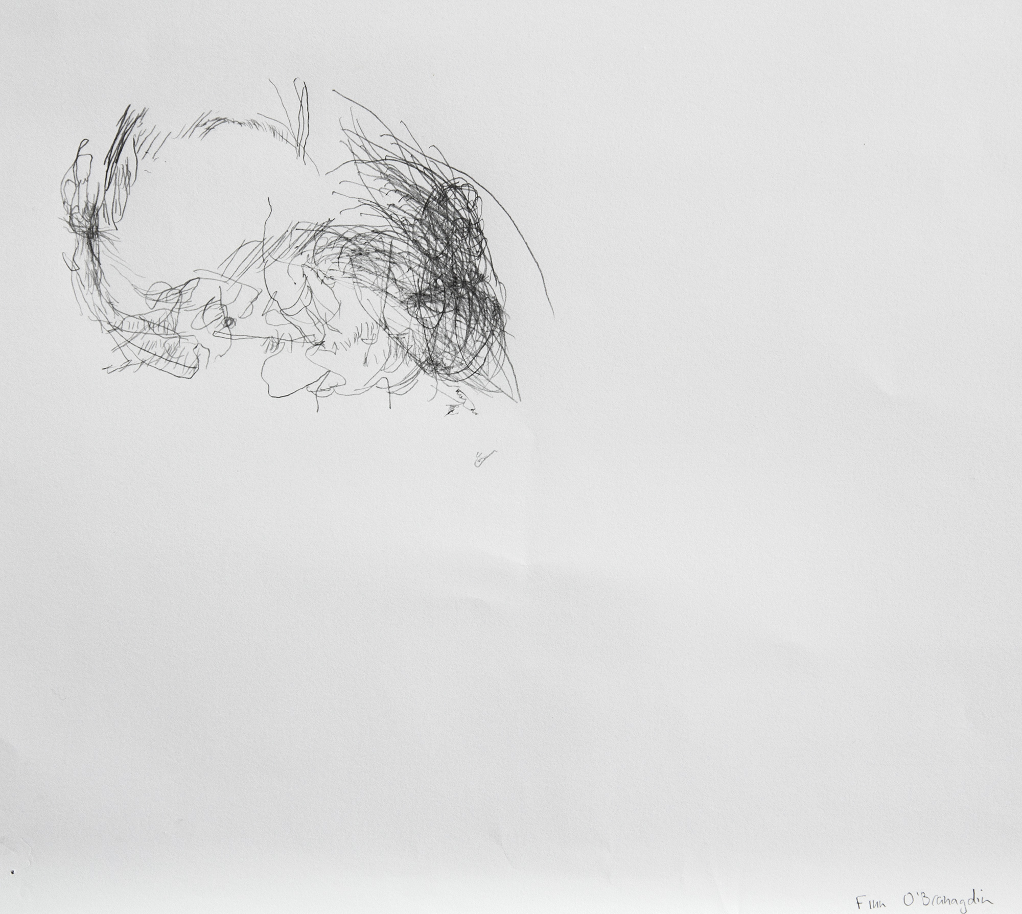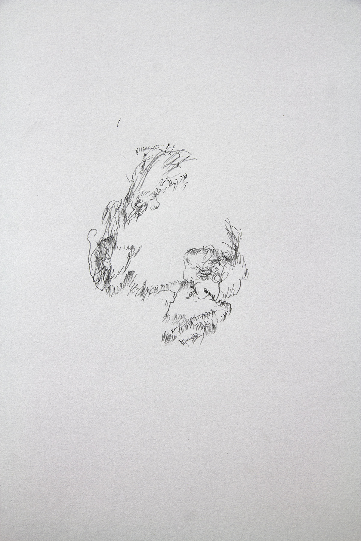 By drawing upside down I am playing with interrupting the conventional ergonomics of drawing, an element that is so familiar to drawing that it recedes into the background and is rarely considered as an active element of process. In these drawings I hope to bring environmental factors like gravity, the body interrupting itself, and the relative position of the drawing surface back to the foreground, so that they become active elements that contribute to the activity of drawing. As I engage with and become familiar with these processes and assess the influence they have on the emergent drawings I begin to accomodate or acclimatise to their influence. This circular and recursive quality makes it difficult to assess such elements in their fresh uninterrupted and unassisted state— as the process of their discovery reveals the properties that may prove interesting to assess as accessed through limited perceptual experience— any artificial limitations of perception (such as blindfolds) are immediately negated as soon as the manifest drawing is assessed. Furthermore, the familiarity with how intentional actions create image-lines will forever influence how intentional lines are made in the future.