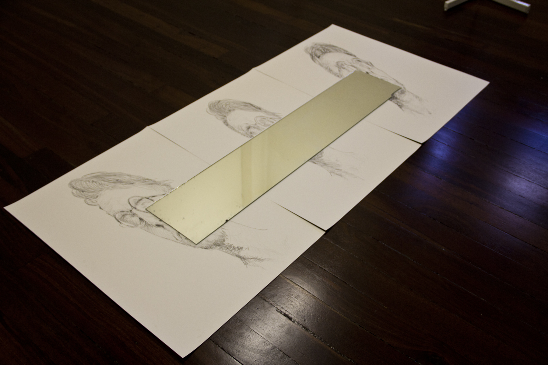 Here are some photos of the space, including the first work I’ve made in the space; a diptych which requires a strategically placed mirror to view the work as a whole: