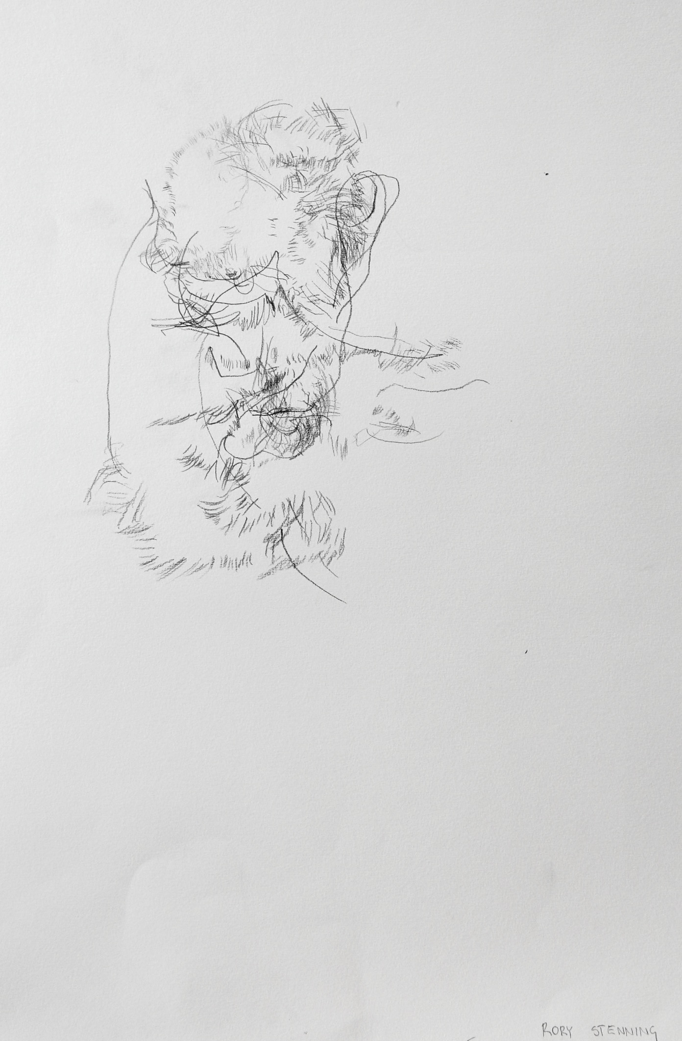 Pen, pencil, and charcoal on paper. 180 x 84cm